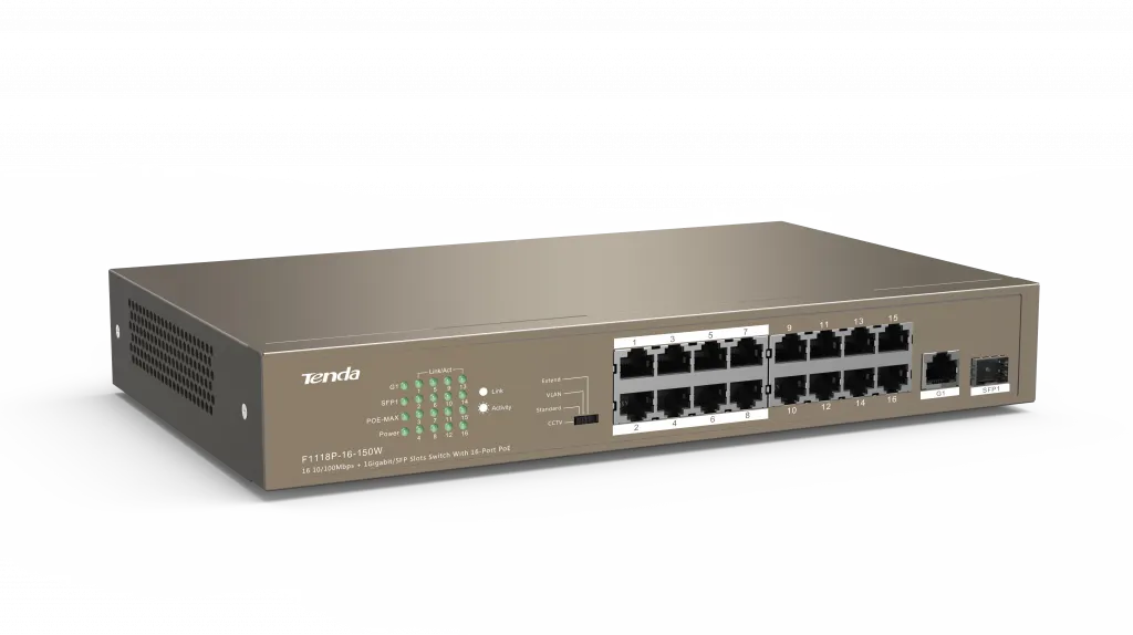 TENDA TEF1118P-16-150W 16PORT 10/100 YÖNETİLEMEZ POE SWITCH